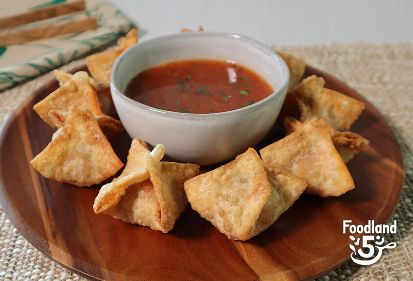 - Serve the crispy wontons hot with the orange-sweet chili dipping sauce.