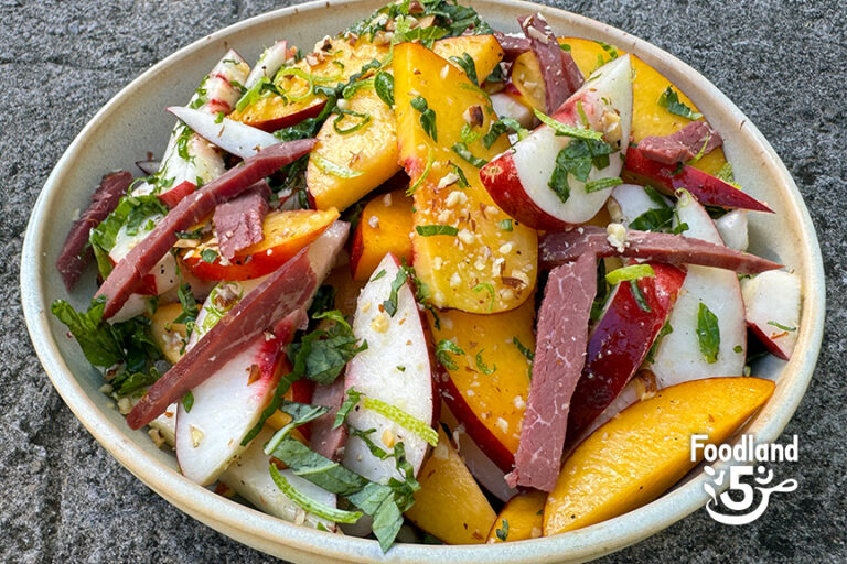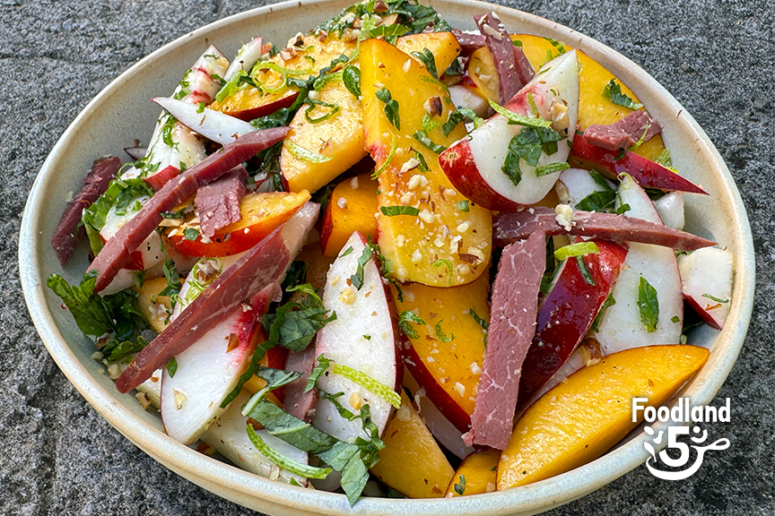 White Nectarine Salad with Pipikaula