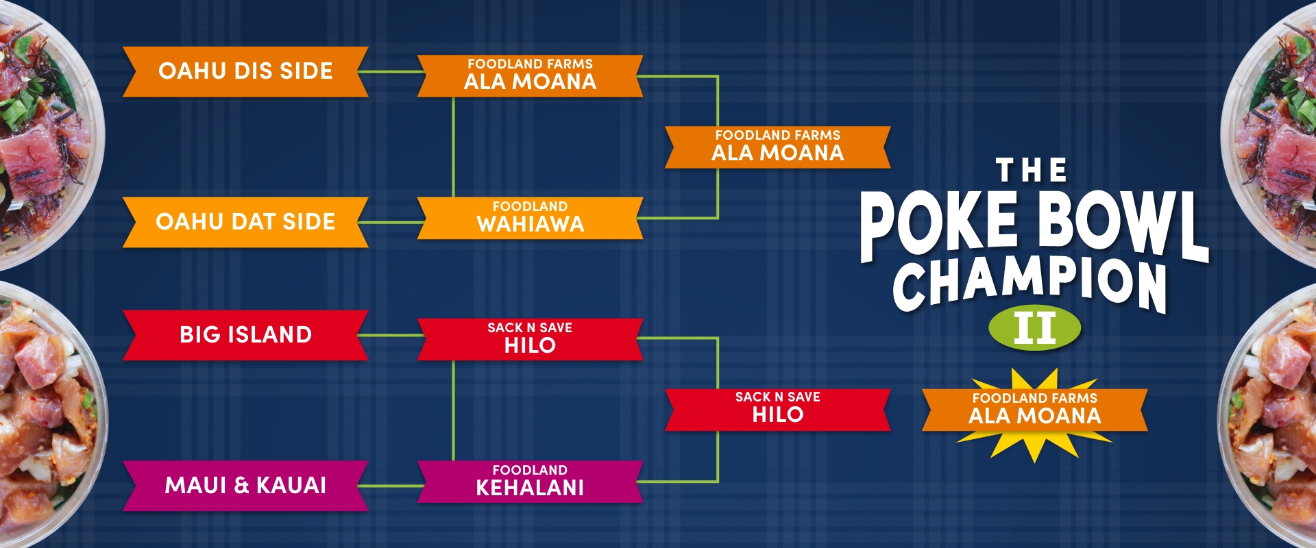 Mahalo for supporting your favorite Foodland poke maker! Foodland Farms Ala Moana has been crowned The Poke Bowl II champion.